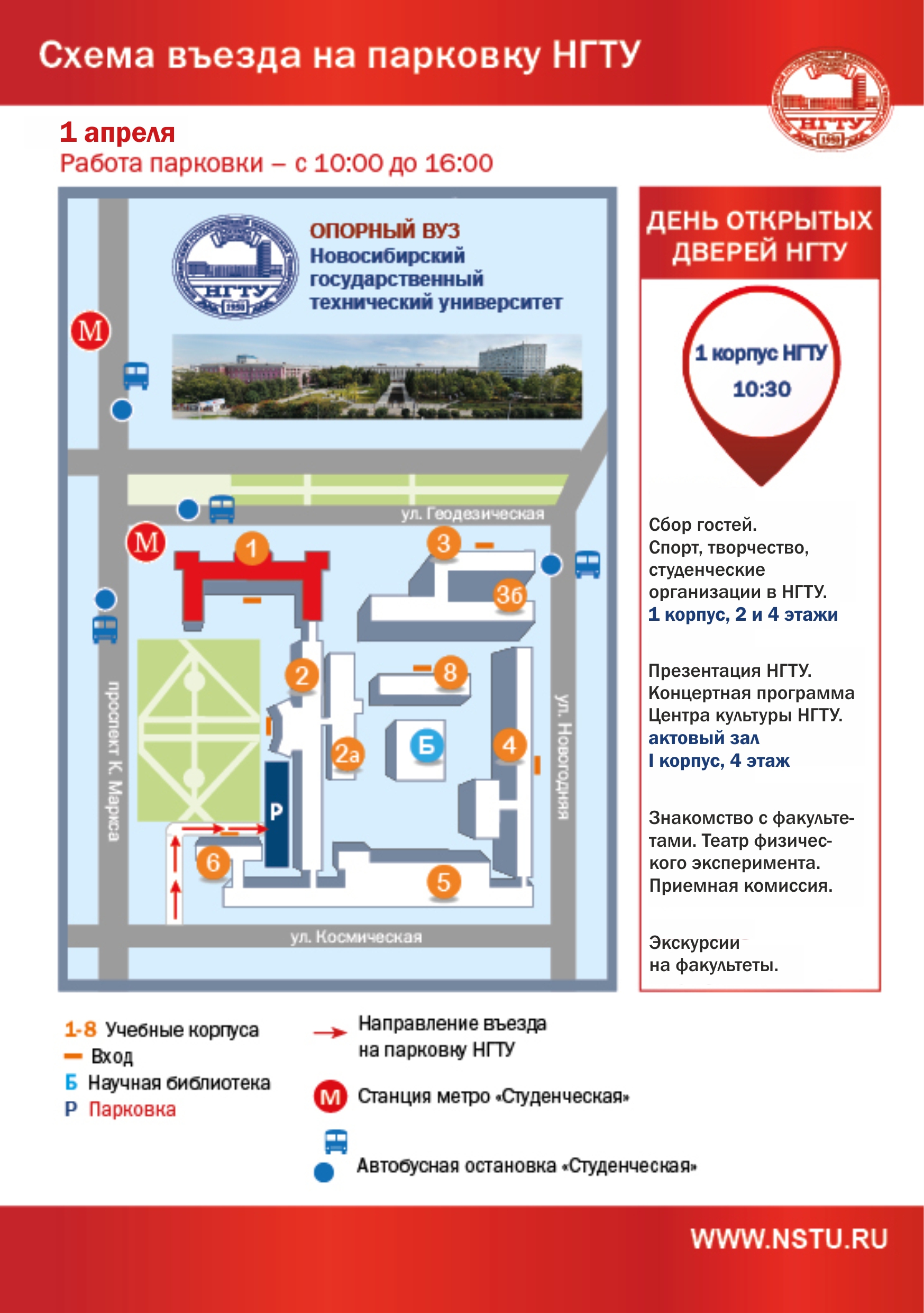 В связи с проведением дня открытых дверей НГТУ будет разрешен въезд на территорию университета к VI учебному корпусу.