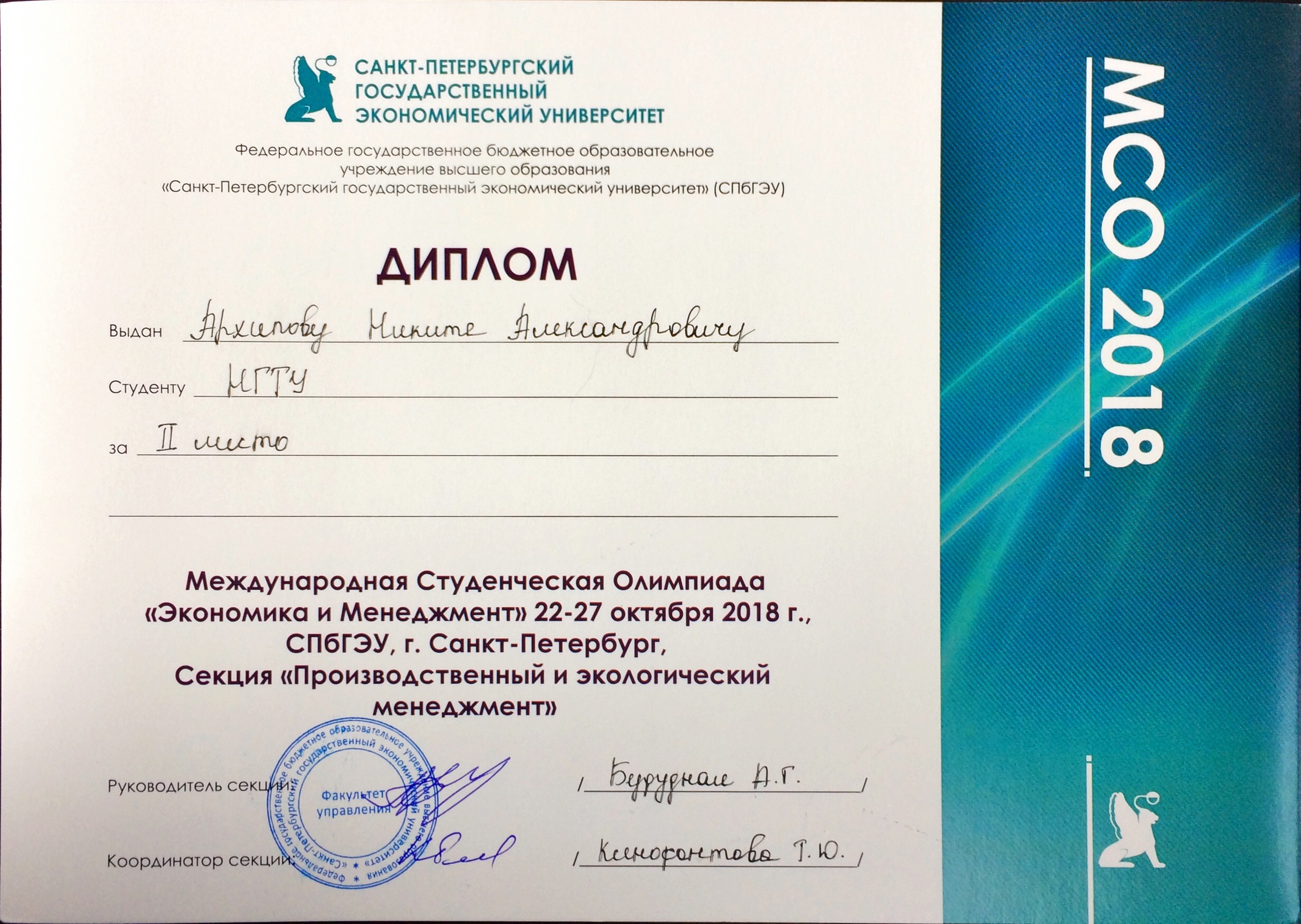 - II место в МСО «Экономика и менеджмент — 2018» среди 16 секций.