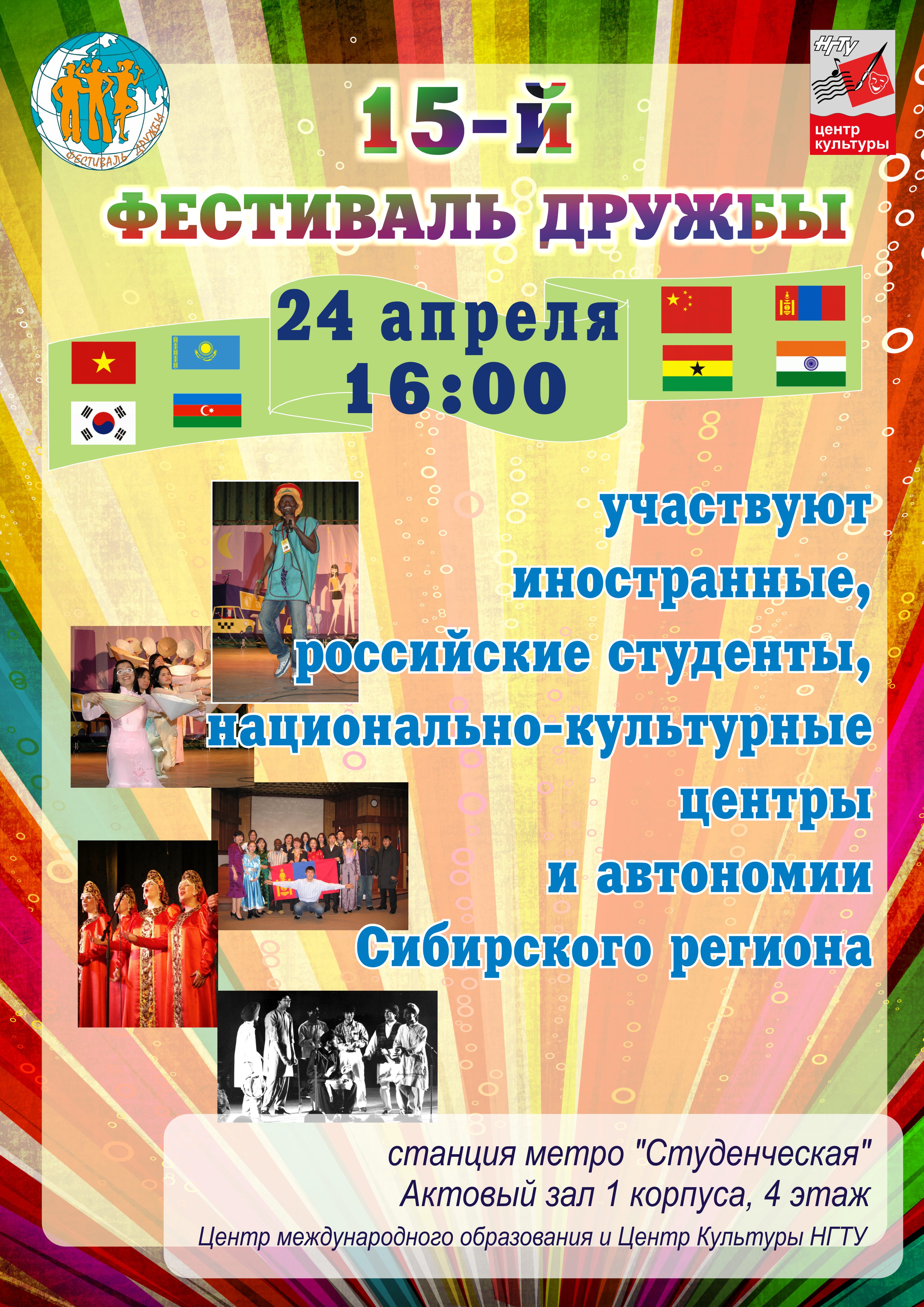 24 апреля в Новосибирском государственном техническом университете пройдет 15-й Международный фестиваль национальных культур «Дружба», в котором примут участие российские и иностранные студенты.