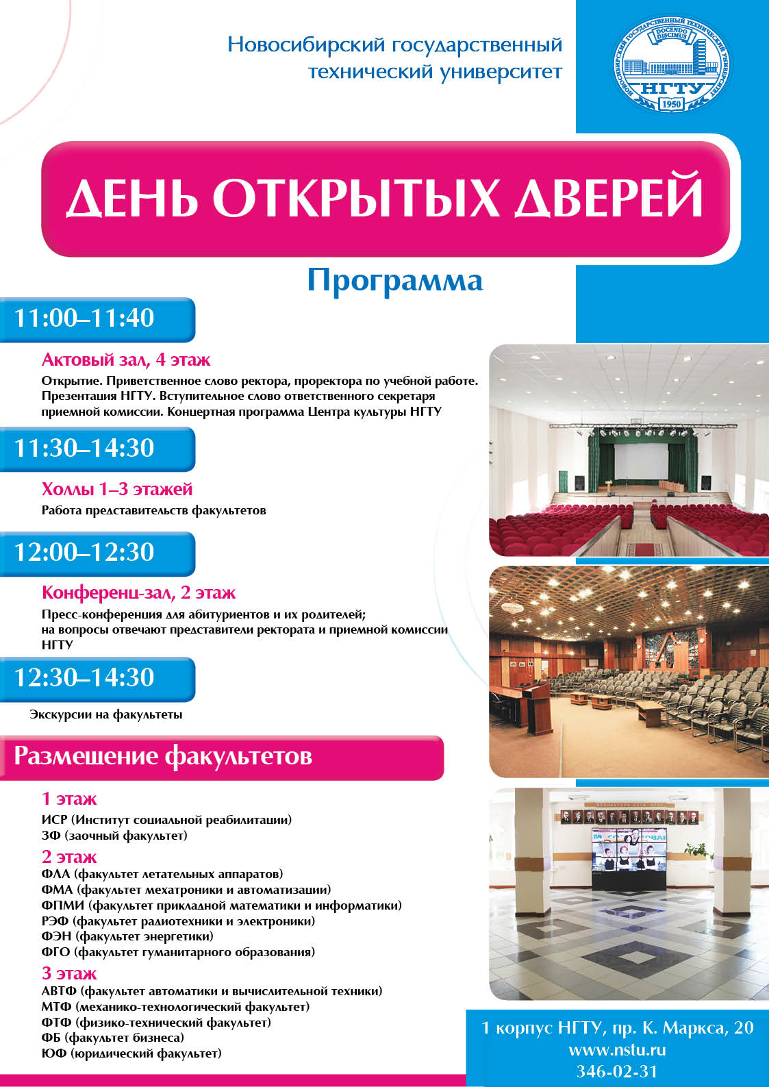 В Дне открытых дверей примут участие все факультеты университета. На вопросы абитуриентов и их родителей ответят представители ректората и приемной комиссии НГТУ.