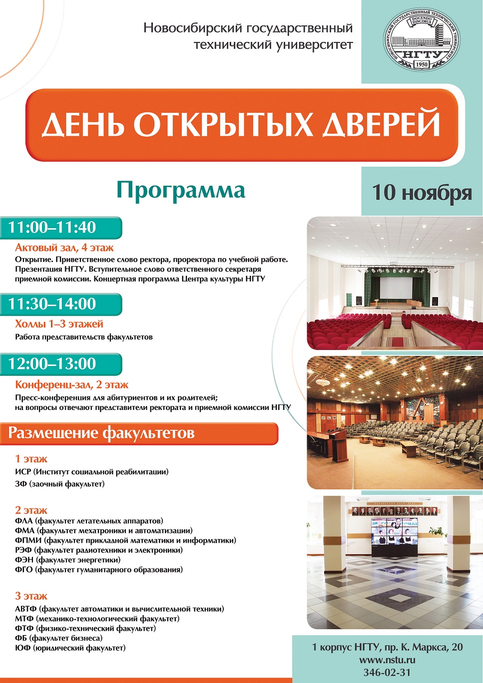 Программа проведения Дня открытых дверей в НГТУ - в прикрепленном файле.